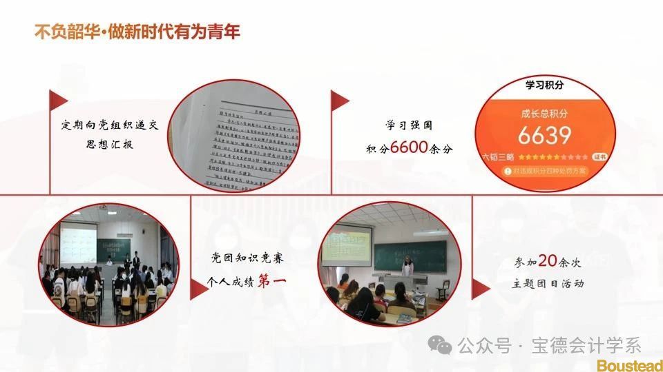 在青春的征途上,她以梦为马,矢志不渝,将“静思悟真谛,勇进破迷障”作为行动准则,镌刻于心。大学岁月里,她宛如一颗璀璨的星辰,在考场中奋笔疾书,在公益活动里播撒爱心,在竞赛场上勇夺桂冠,在学术研究的瀚海中潜心探索。每一个台,都见证着她的拼搏与奋进;每一次挑战,都铸就了她的成长与蜕变。如今,她正扬起梦想的风帆,向着更高更远的目标破浪前行,无畏风雨,不惧险阻,只待彼岸花开,书写属于自己的荣耀华章,成就更为绚烂夺目的辉煌人生。