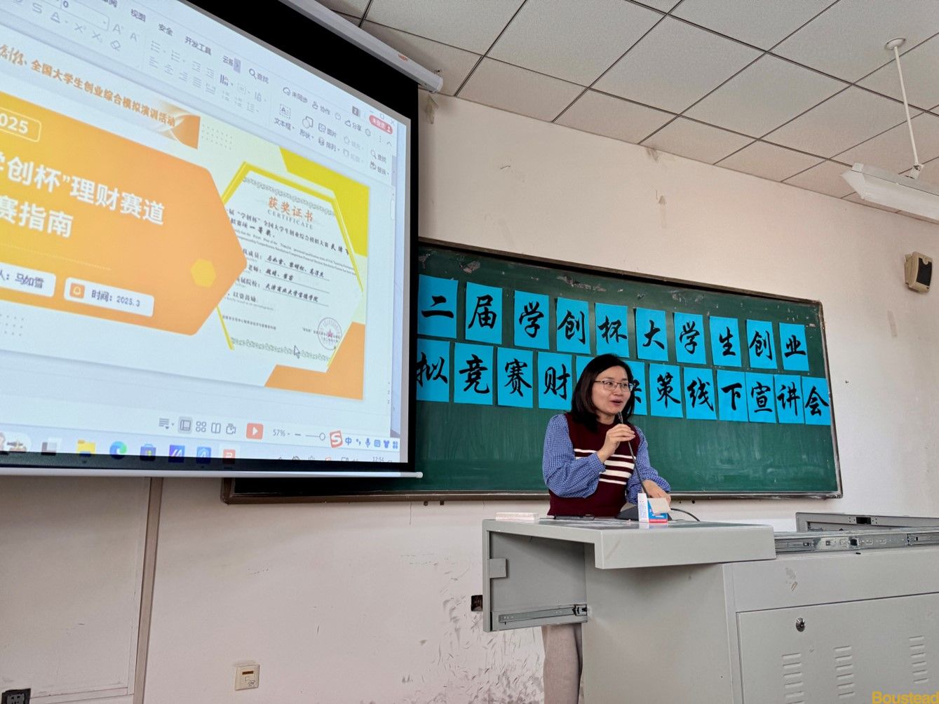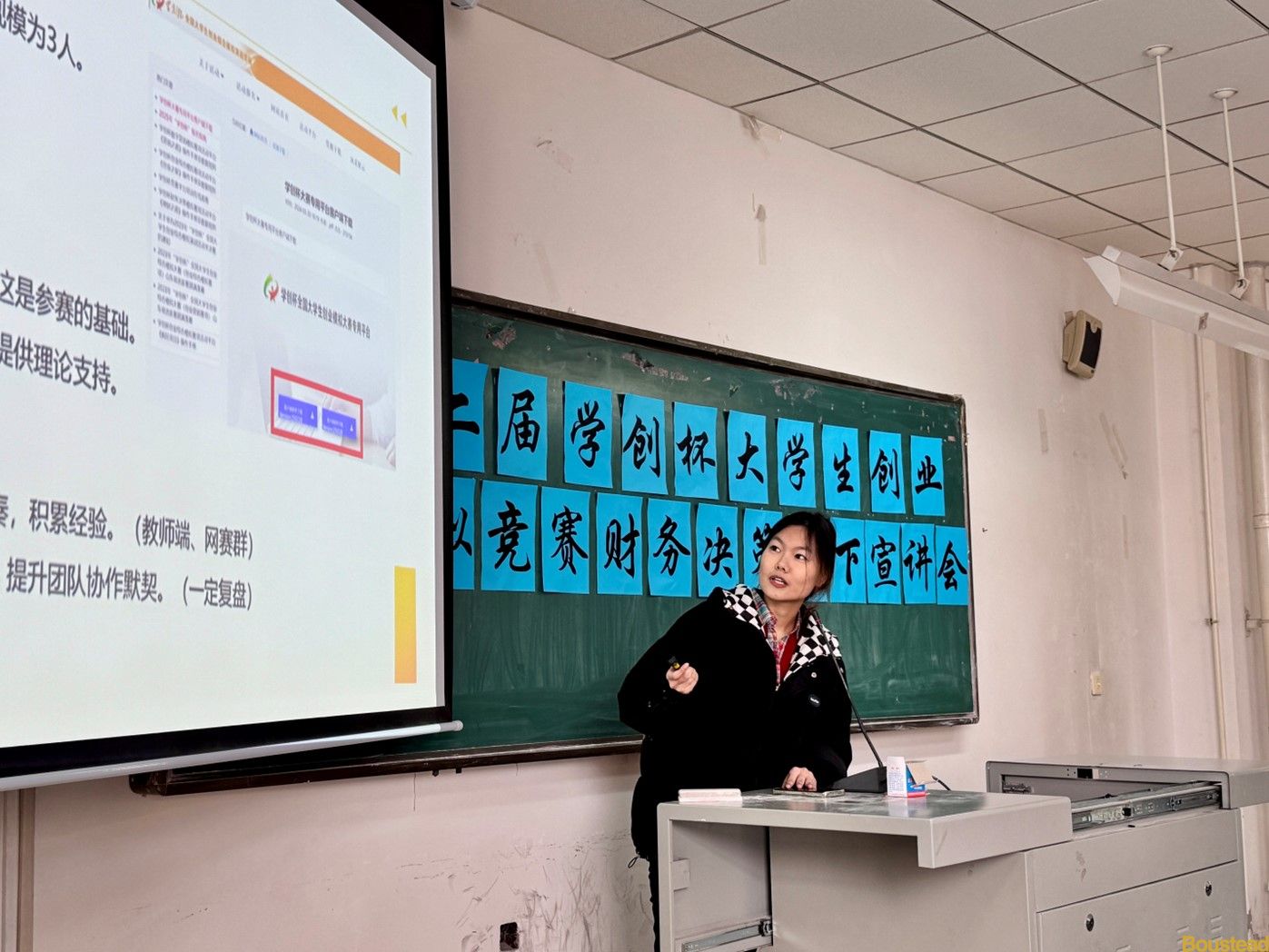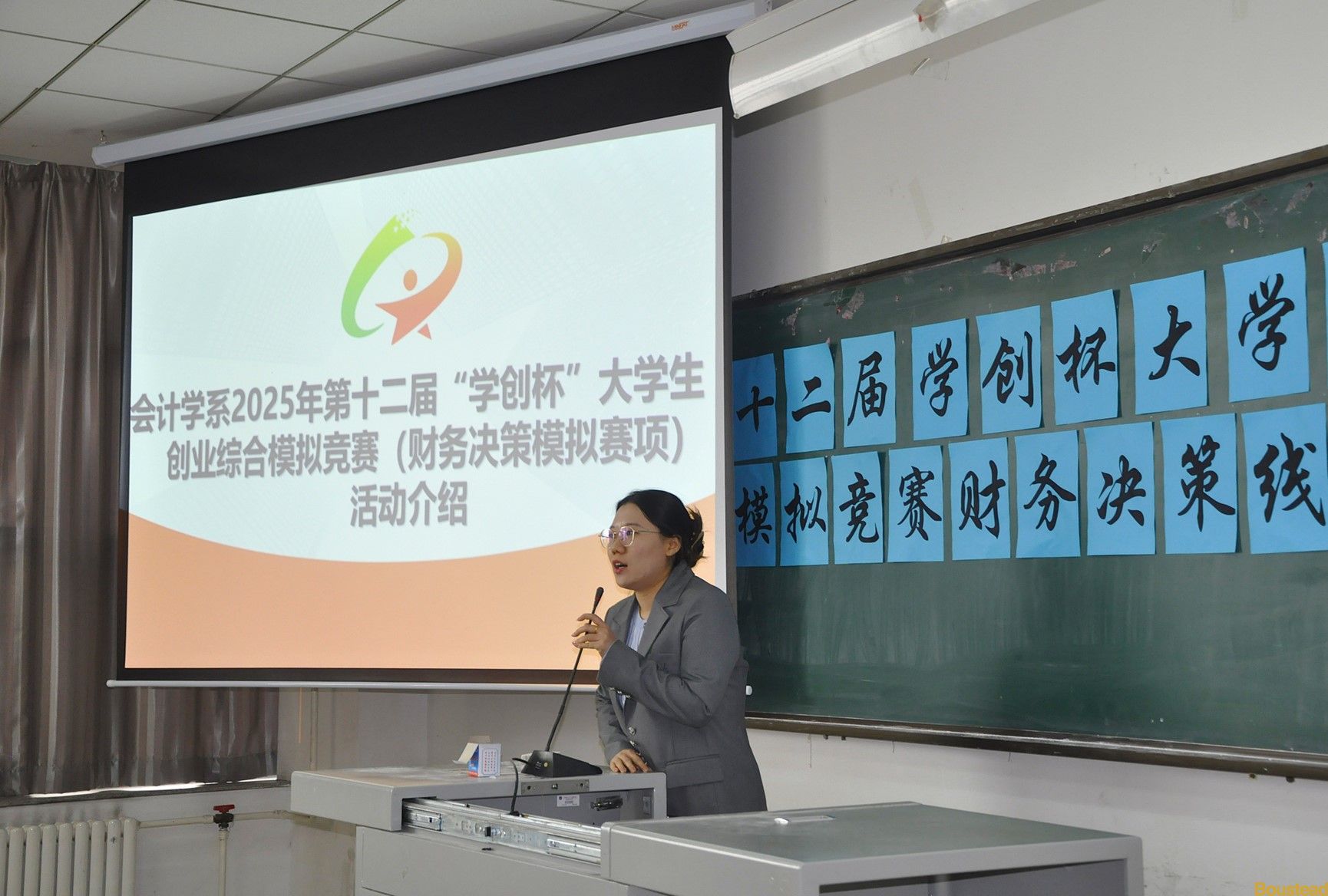 宣讲会伊始,会计教研室主任侯磊与教师周磊进行竞赛介绍,深入浅出地阐述了“学创杯”大学生创业模拟竞赛的背景、规模以及财务决策赛道的独特魅力,让同学们对此次竞赛有了全面且清晰的认知,激发了同学们参与竞赛的热情。