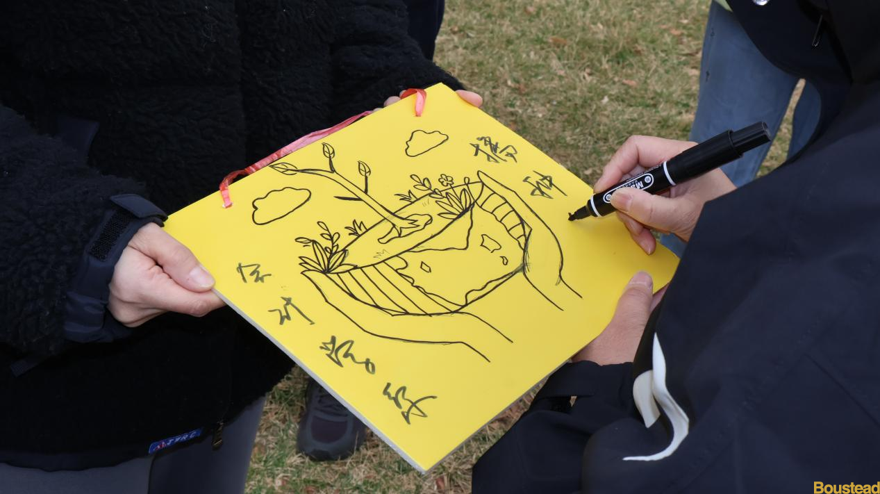 活动渐近尾声,老师满含期许,拿起画笔,在画板上亲手郑重写下“会计学系,播种希望”的寄语,为此次植树活动添上饱含深情与期待的一笔 。