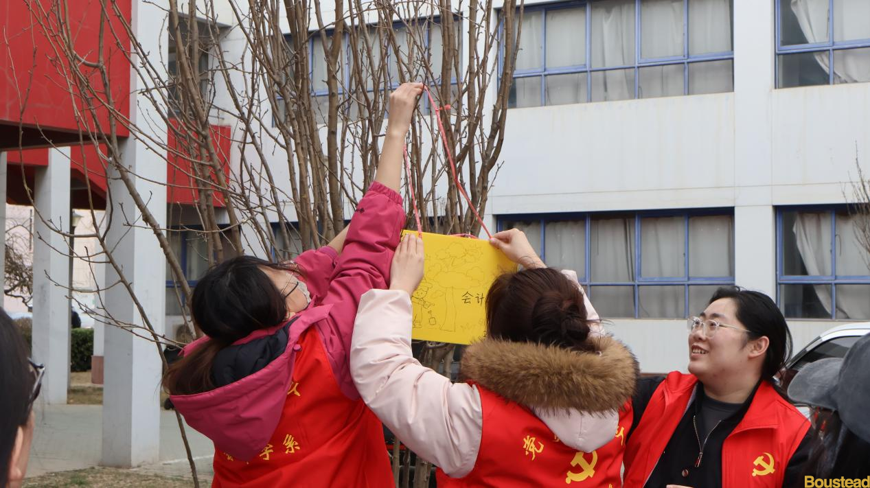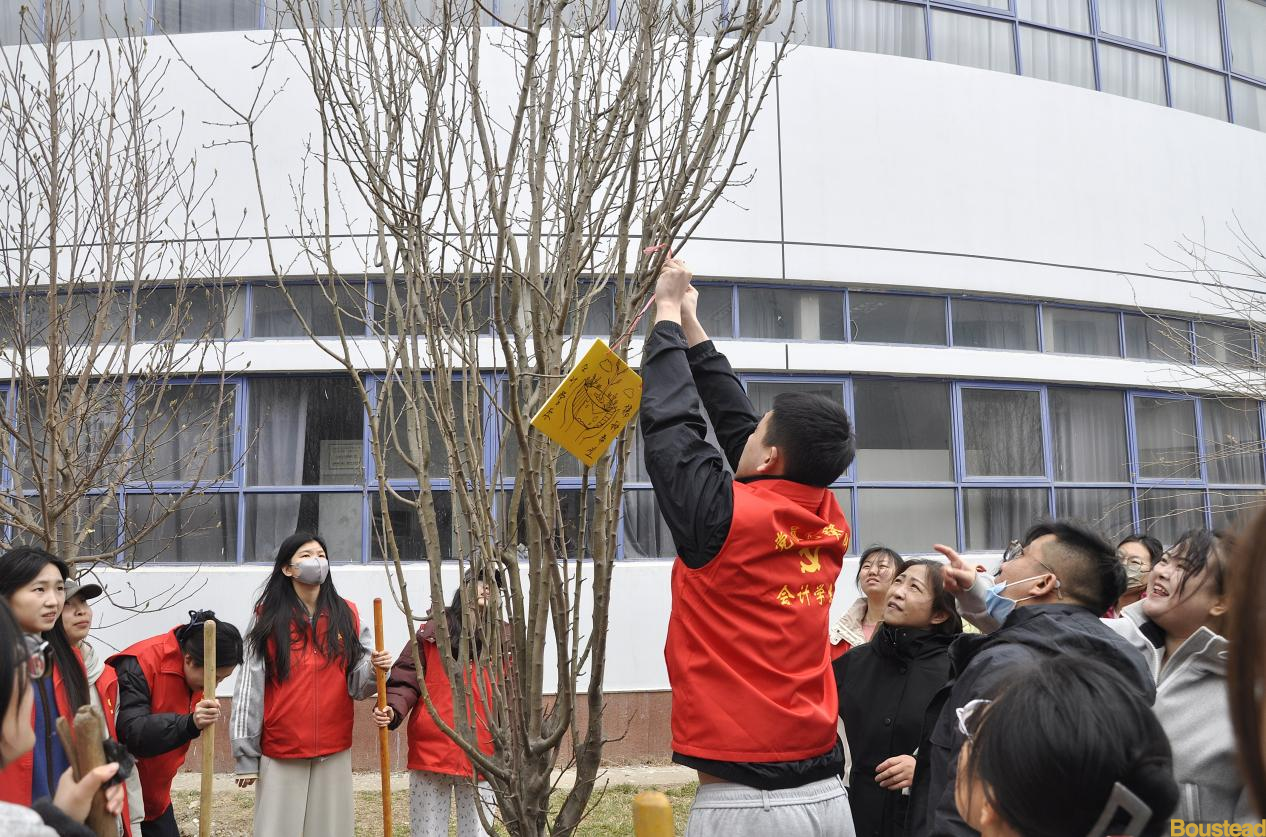 活动当日,师生党员们早早地来到指定植树区域集合。大家身着整齐的志愿者服装,热情高涨。分工明确,默契配合,有的同学手持铁锹,奋力填土;有的同学提来水桶,为新栽的树苗浇水灌溉;还有的同学手持画笔,为树苗献上会计学系对树苗的美好期盼。
