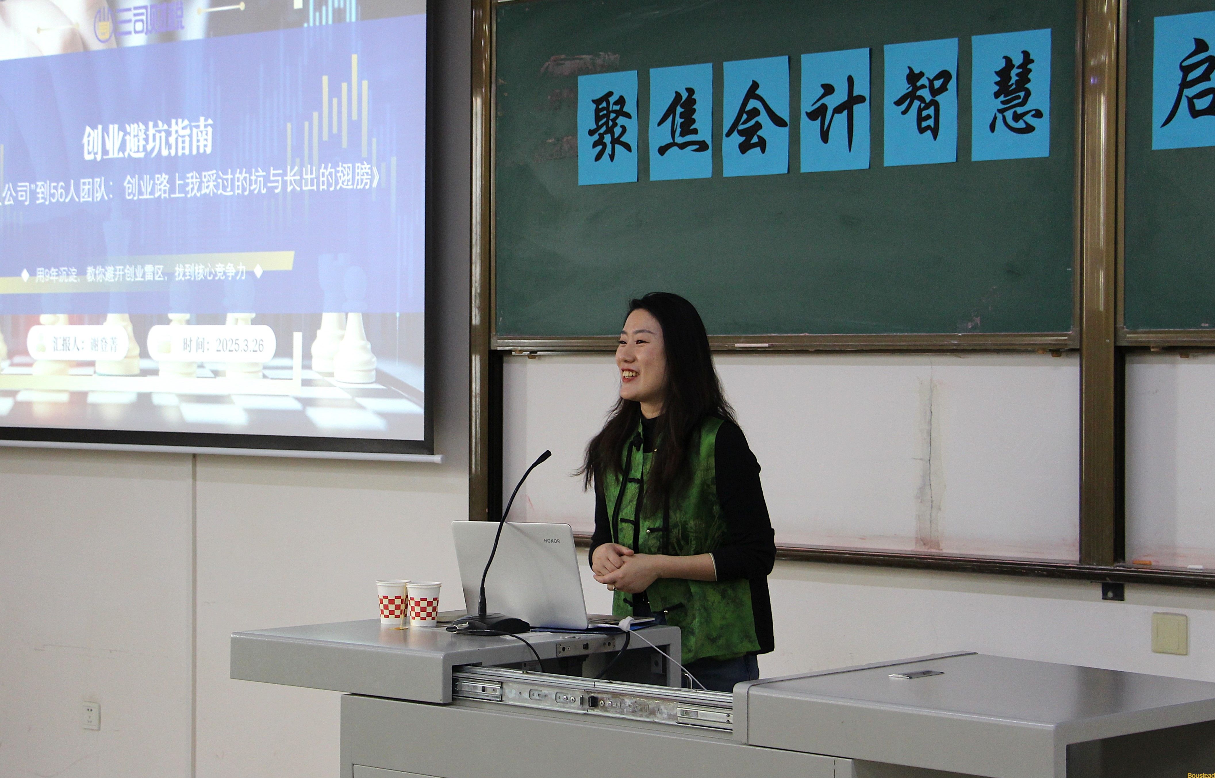 谢登菁学姐创立的三司(天津)企业管理有限公司在行业内已崭露头角。活动中,学姐结合自身创业历程,进行了精彩的演讲。她详细讲述了创业初期面临的种种挑战,包括资金筹备、市场开拓、团队组建等方面的艰难抉择。在分享创业避坑指南时,学姐着重提醒同学们要重视市场调研,切勿盲目跟风。