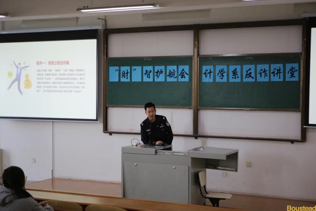 为让同学们深刻认识到电信诈骗的多样形式和危害,增强大学生防范电信网络诈骗的意识和能力,营造校园反诈氛围,切实守护校园安全,4月14日下午,学苑派出所社区民警李宝栋受邀走进我系,为师生带来一堂生动实用的反诈专题讲座,助力大家在未来的学习和生活中有效抵御诈骗风险。