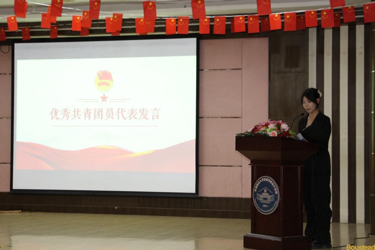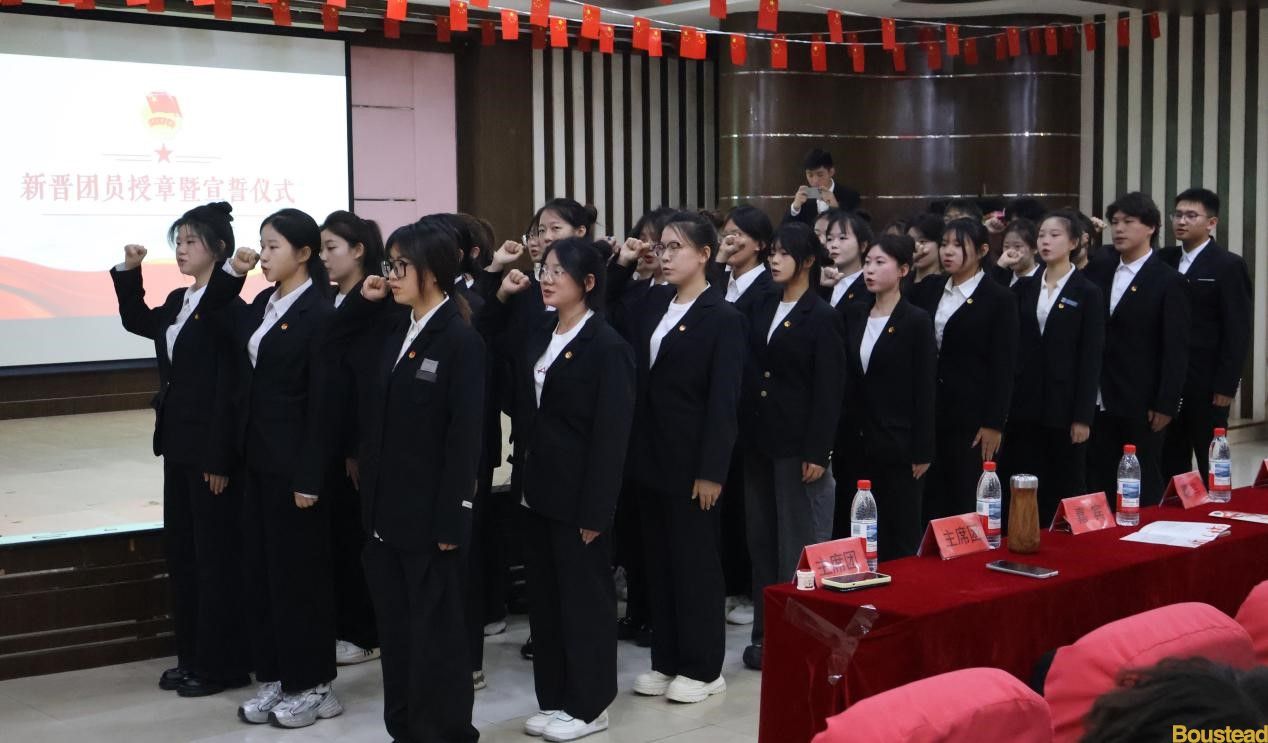新晋团员授章暨宣誓仪式。在庄严的团旗下,新晋团员们佩戴上闪亮的团徽,紧握右拳,以铿锵有力的誓言许下为共产主义事业而奋斗的坚定承诺。这一仪式不仅是对新团员的认可与激励,更象征着五四精神在新一代青年中得以传承与延续。