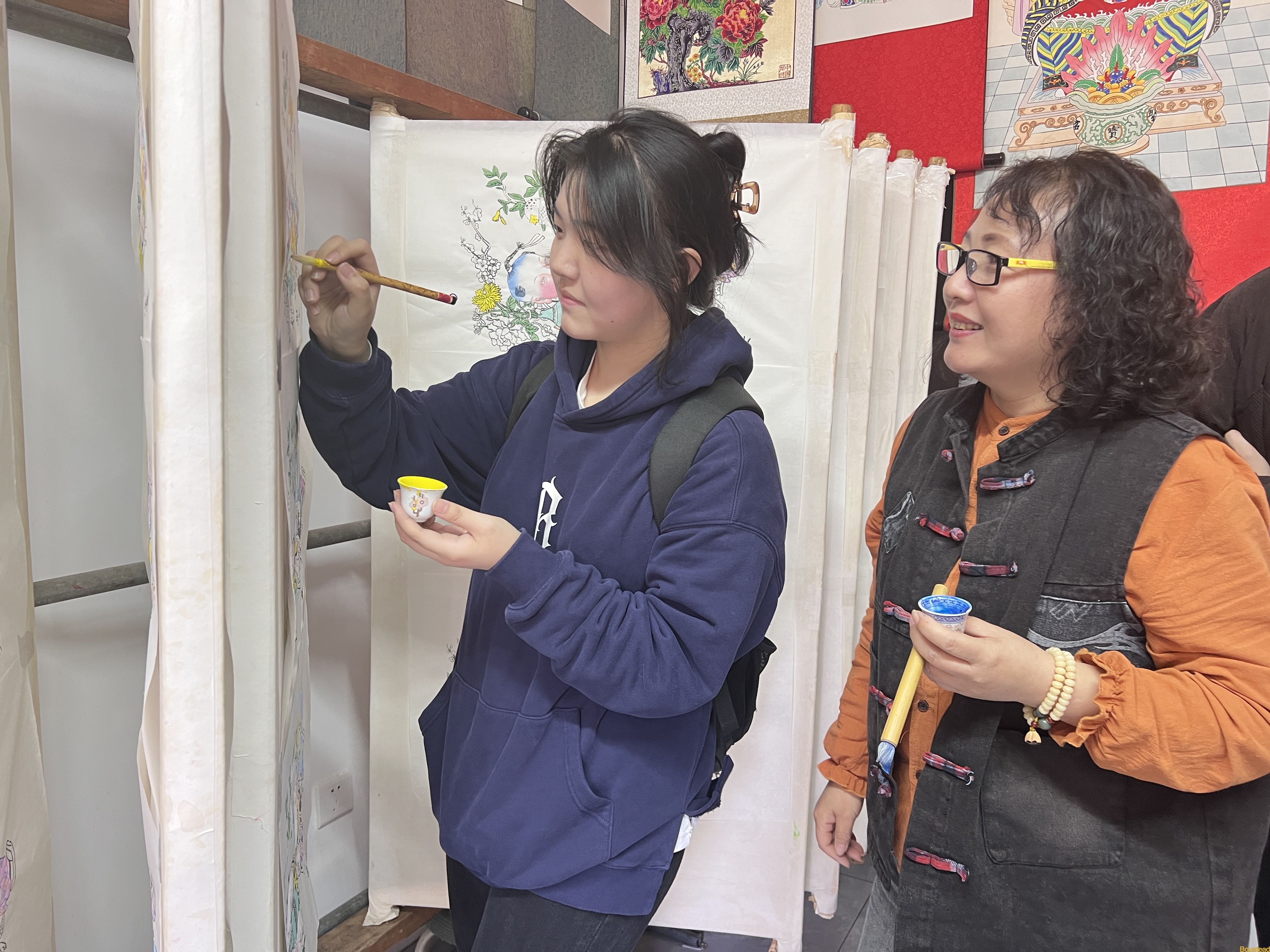 古镇中,不少“老字号”坐落于此。在杨柳青木版年画店铺中,学生们看着一件件作品神形兼具,感受一代代接续的工匠精神,正是这种精神让中华文脉得以绵延不息。