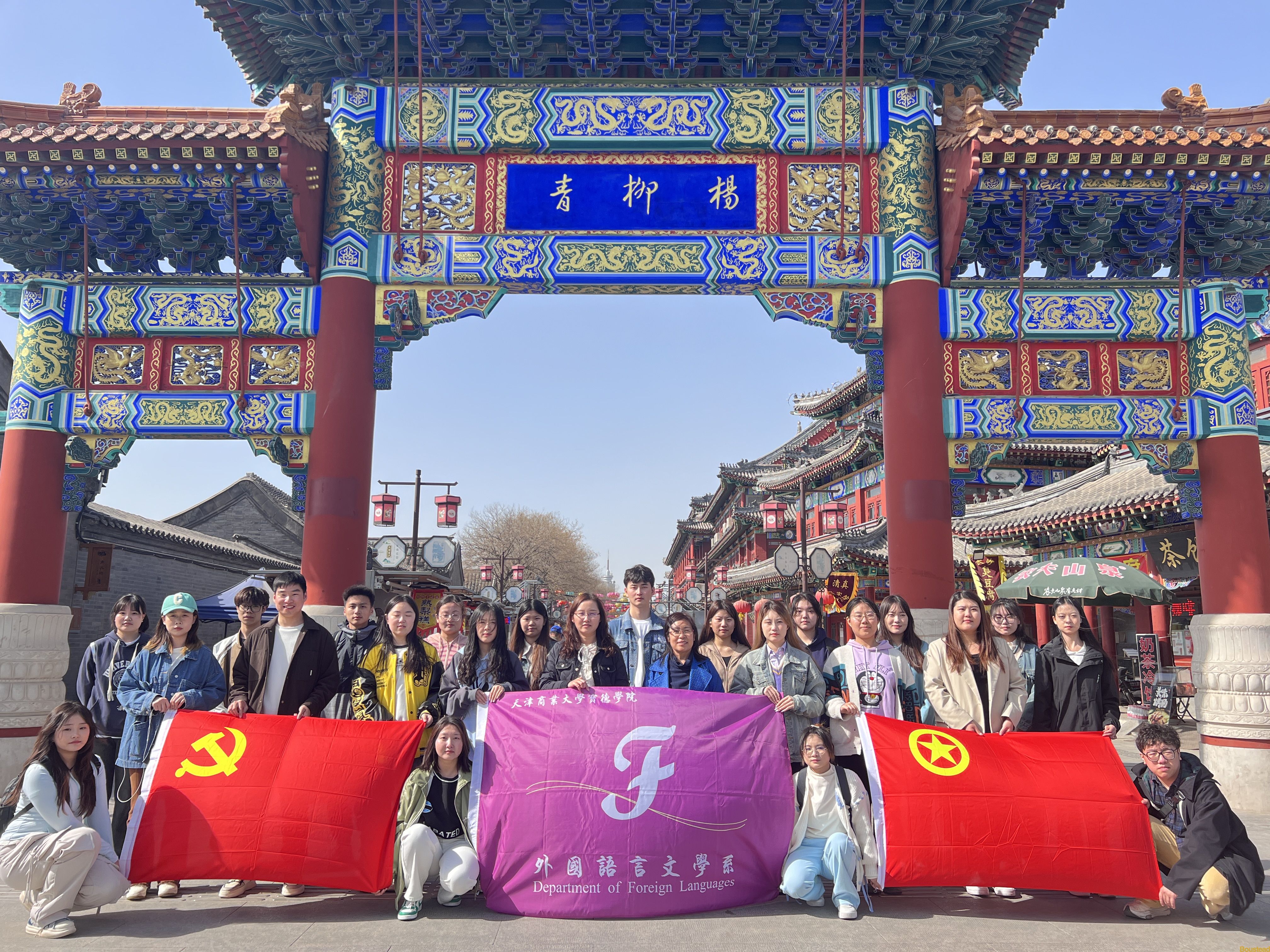 3月29日,为深入学习贯彻习近平总书记视察天津重要讲话精神,外国语言文学系学生党支部及团总支、学生会学生代表走进杨柳青古镇,了解天津特色非物质文化遗产。
