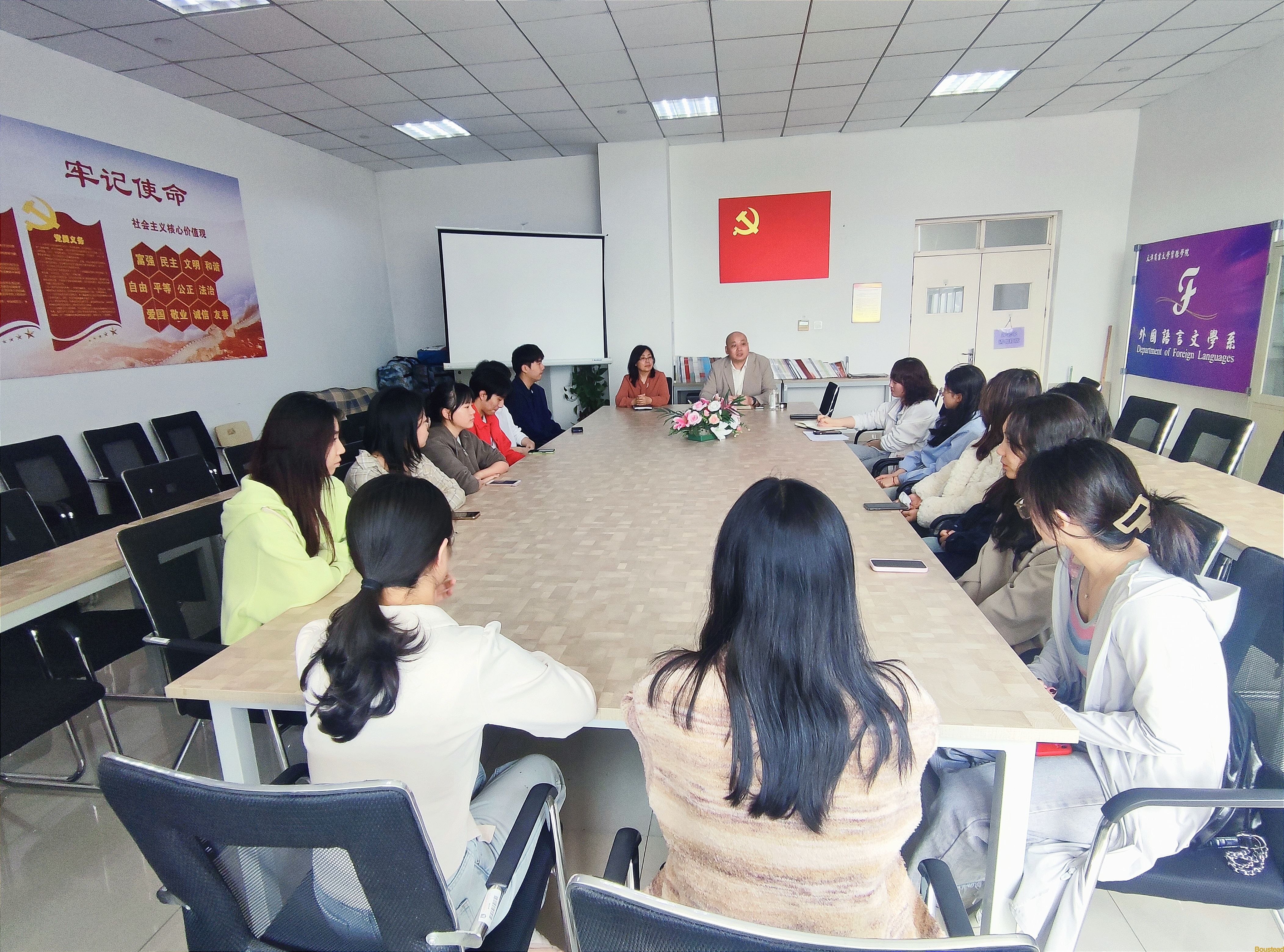 为了解学生们实习工作的情况以及实习过程中遇到的问题,外国语言文学系于2024年4月15日召开2020级毕业生实习座谈会。参加此次座谈会的有外语系主任罗志勇、党总支书记兼行政副主任杨宝懿、英语教研室副主任贾婕婷、20级辅导员卢争光以及来自2020级日语、商务英语、英语专业的13名学生代表。
