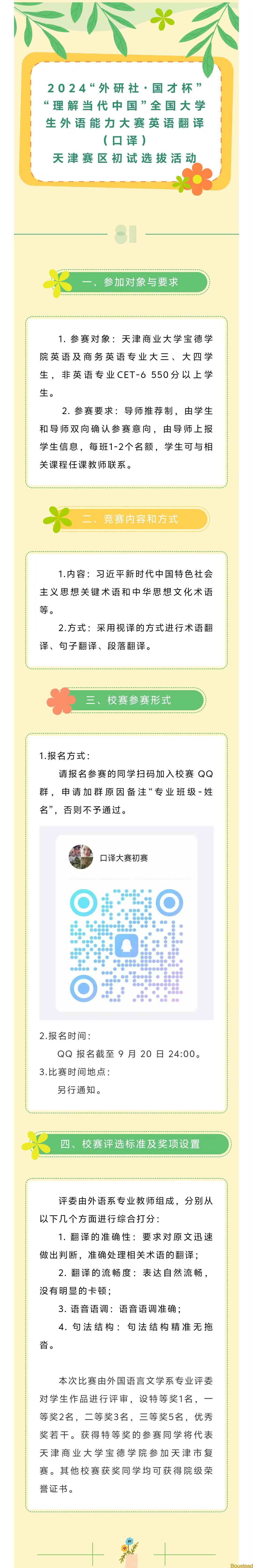 2024“外研社·国才杯”“理解当代中国”全国大学生外语能力大赛英语翻译(口译)天津赛区初试选拔活动