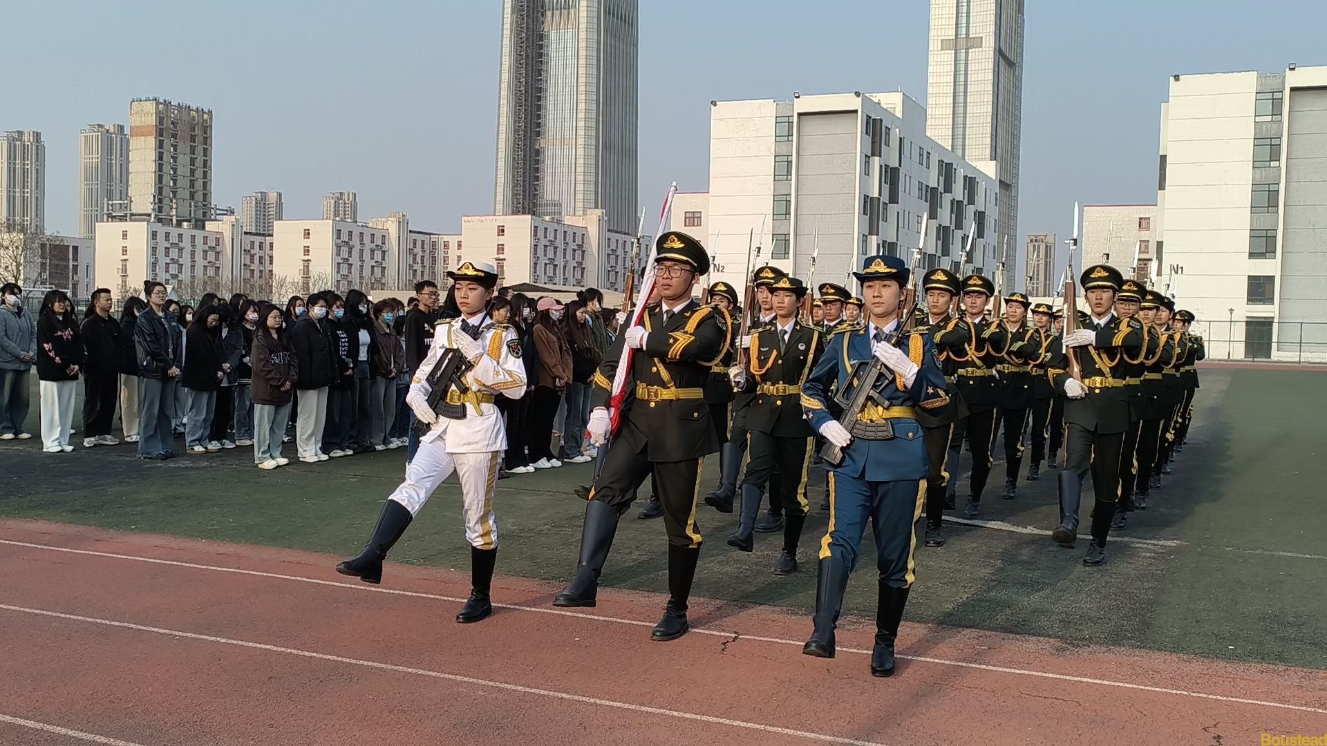 日语2202班葛宏伟同学进行发言,她号召我们在清明节之际,在这个庄严的升旗仪式中,应共同缅怀革命先烈,学习他们的爱国情怀,弘扬伟大的革命精神,坚定理想信念,勇于担当,为实现中华民族伟大复兴的中国梦而努力奋斗。