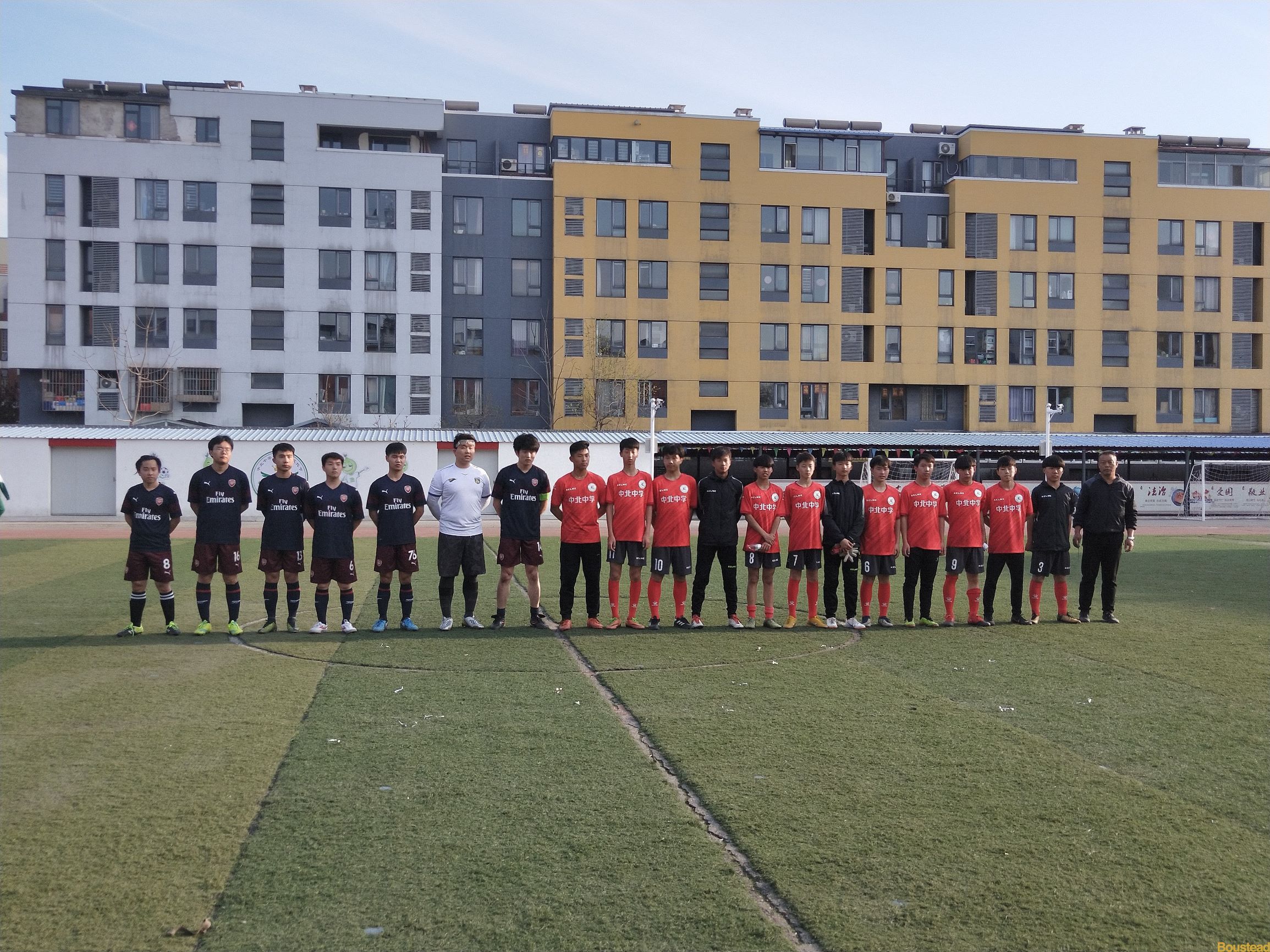 闭幕式上,我系啦啦操队为中北的同学们献上了一段精彩的啦啦操表演,收获了同学们的喝彩和掌声。表演结束后,经过短暂的热身运动,下午四点宝德学院外语系与中北中学足球友谊赛正式开战,双方在赛场上你来我往,不断在攻防两端上演精彩对决,上半场刚开局我系第一次组织进攻便攻入一球,,给对方造成很大压力,但中北足球队的同学们训练有素顶住压力扳回比分。下半场再战,我系代表队做出队员和队形的重要调整,调整进攻战术。最终,经过一个小时的酣战,两队以2:4结束了本场比赛。