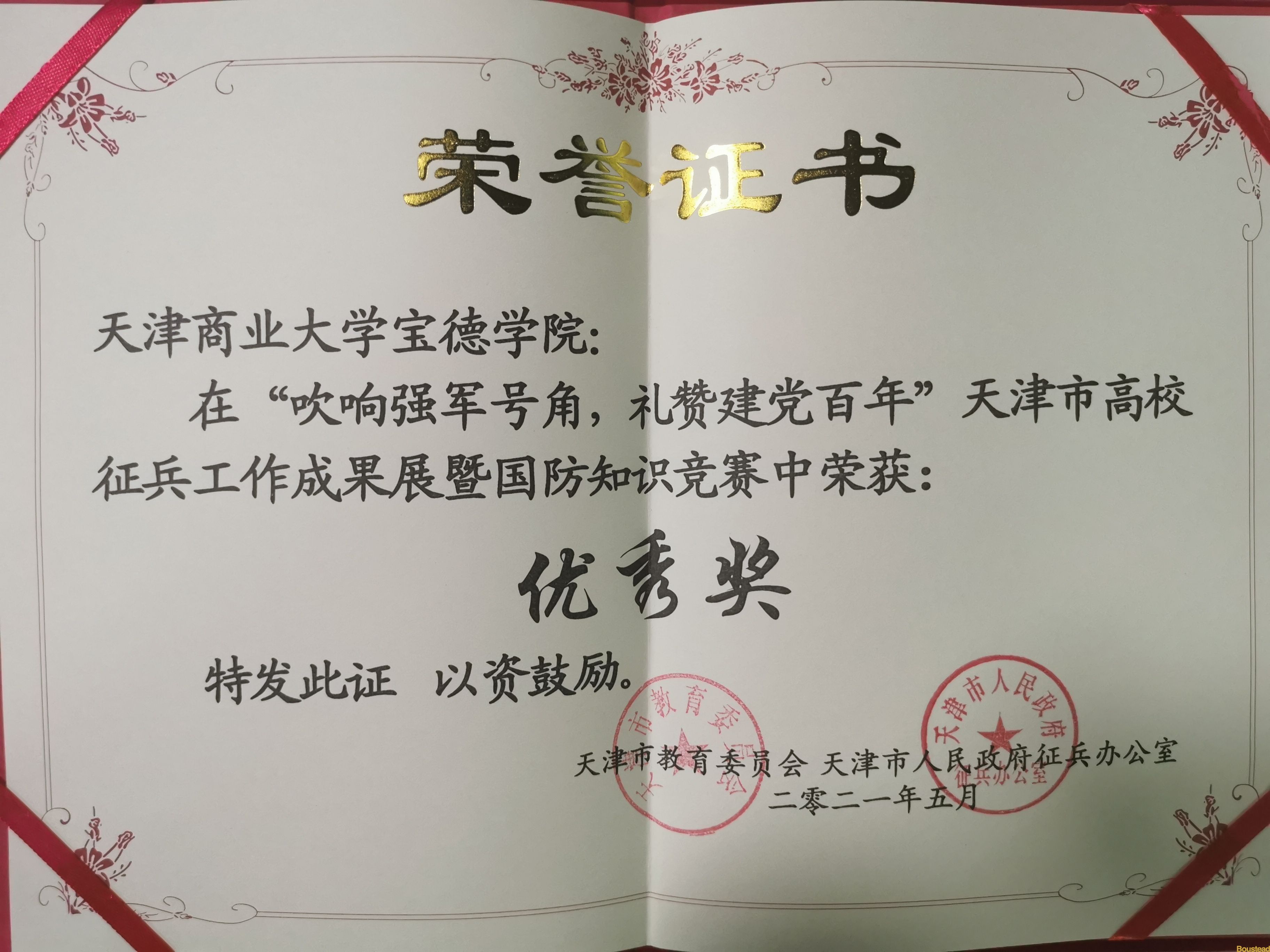 我校在2021年天津市高校国防知识竞赛中荣获优秀奖