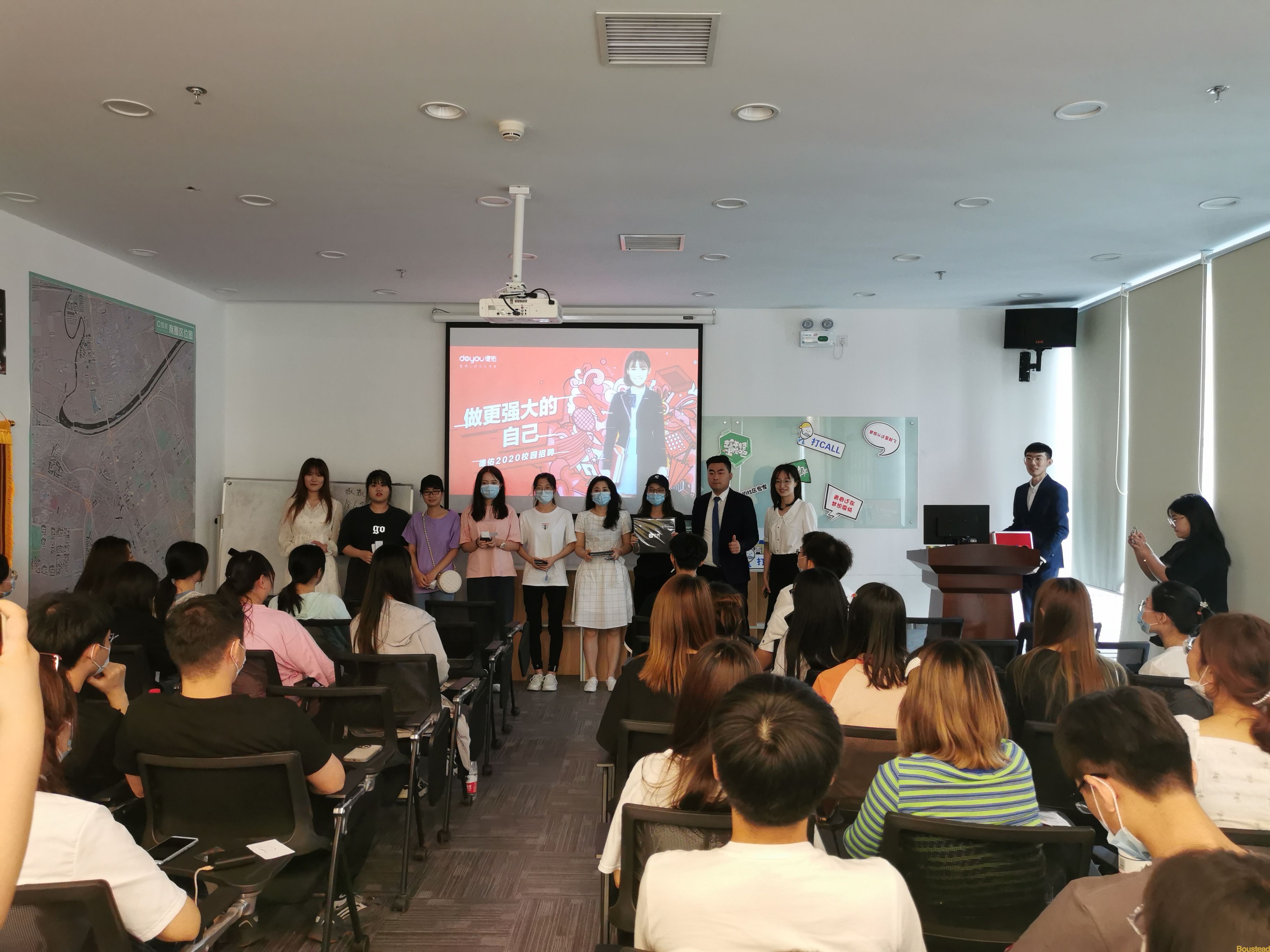 随后新葡的京师生又参观了“链家”旗舰店,天津贝壳房地产经纪有限公司的三位项目总监介绍了公司的业务内容、晋升渠道,薪酬体系和培养模式并与新葡的京学生进行了互动交流,现场气氛十分热烈,学生们表现很活跃 还有互动抽奖环节,最后还有三名学生上台讲了自己的感受。