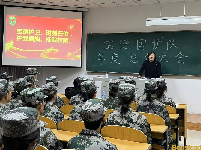 员们坚强的意志力和团队凝聚力。他对国旗护卫队给予殷切期望,希望宝德学院国旗护卫队不忘初心、砥砺前行,继