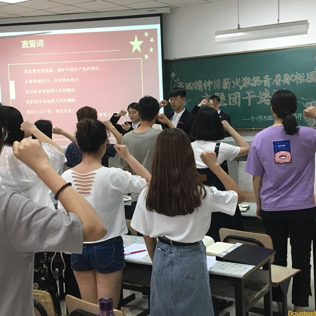 接下来,为了激发同学们的爱国精神,他们带领团支书庄严宣誓。我宣誓