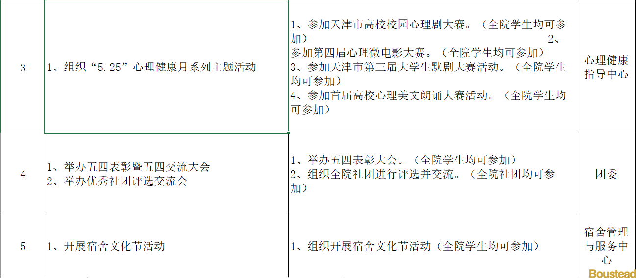 备注:以上工作是学工部各中心2019年5月份将开展的主要活动,其他临时性活动请同学们随时关注微信公众号、班级群等。