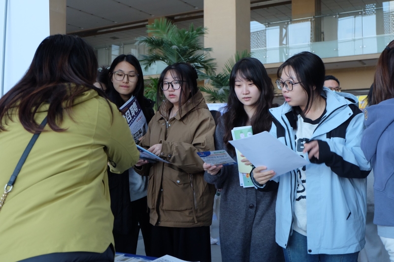 洽谈会现场人头攒动、热闹非凡。2026届毕业生们手持精心修改的简历,穿梭在各企业展台之间,与用人单位招聘代表展开细致交流,详细获知了岗位需求、发展前景等信息。此外,还有不少非毕业年级学生来到了现场,提前感受就业氛围。面对同学们的疑问,用人单位也都一一耐心解答,主动介绍企业情况,不少展台前甚至排起队伍。