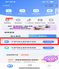选择“天津市城乡居民医疗保险”点击立即缴费,进入缴费页面。