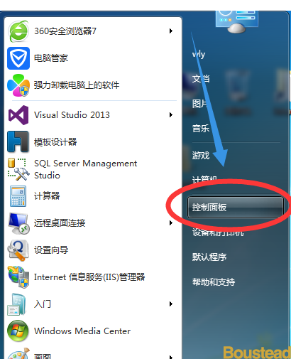 1. 点击【开始】菜单,选择右侧的【控制面板】选项