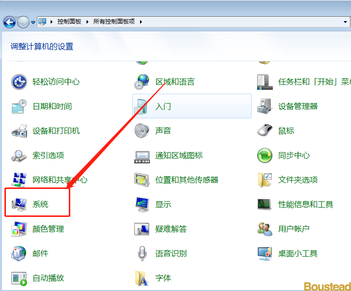 2. 打开【控制面板】选项后,选择【系统】设置