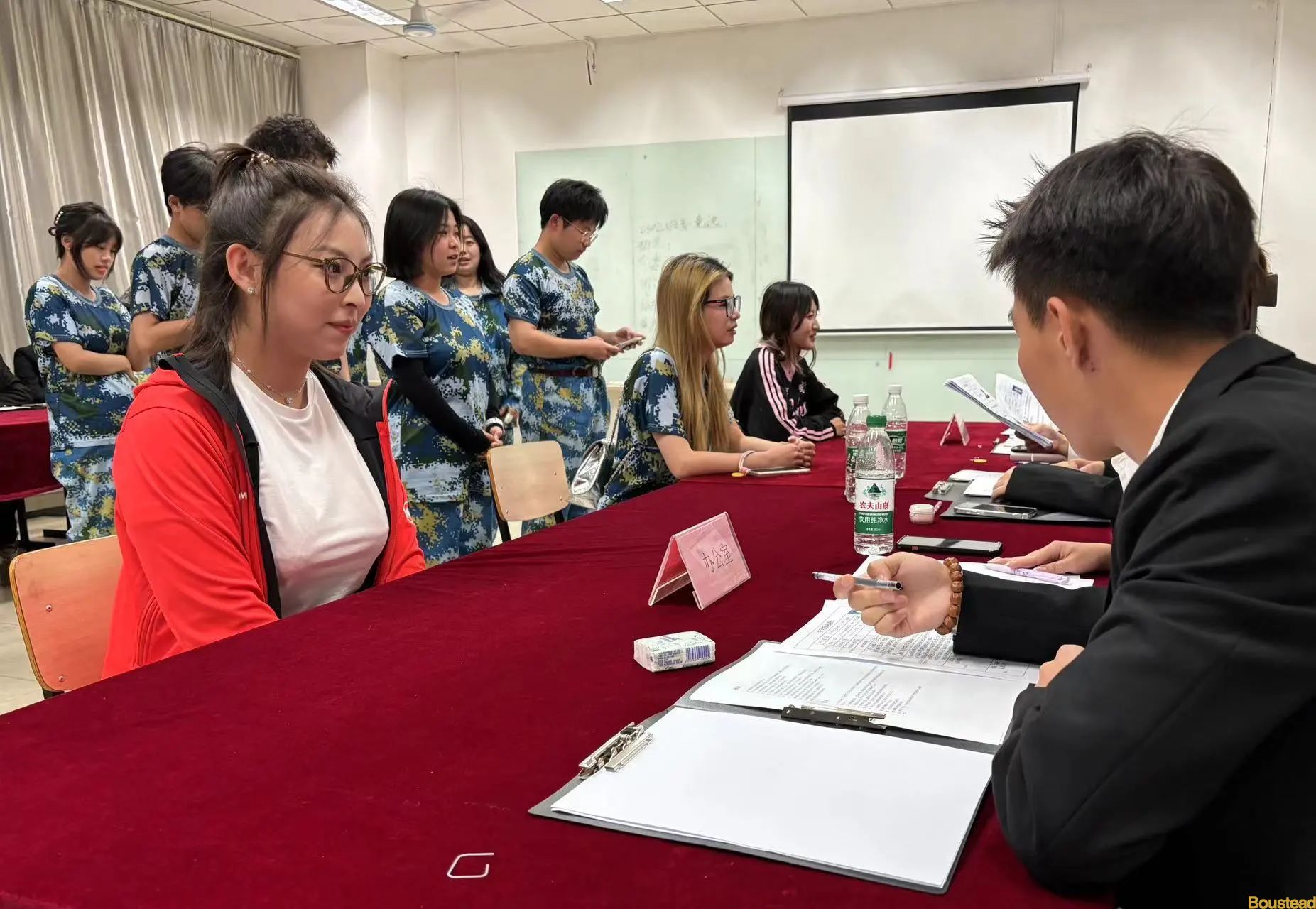 面试现场,同学们准备充足,部长通过同学们的自我介绍,并进行随机提问,主要考察同学们的语言表达能力、思维创造力等。