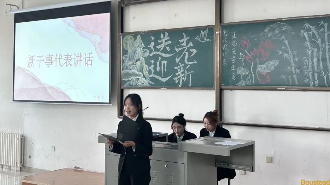 其次,新干事代表的发言让人充满了激情与活力,她说:" 作为一名新干事,我深知自己肩负的责任和使命。我们不仅要继承和发扬学团的优良传统,更要勇于创新,积极进取,为同学们提供更好的服务。在接下来的工作中,我们将秉持“服务同学,锻炼自我”的宗旨,让每一位师生感受到家的温暖,脚踏实地,尽职尽责地完成每一项任务,不辜负老师的期望,不负同学们的信任。”让我们携手并进,共创美好未来!