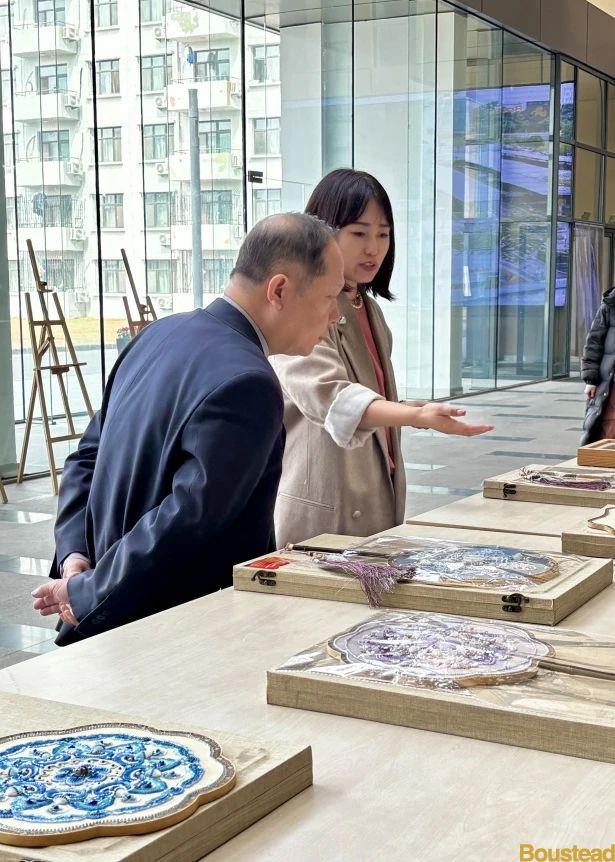 传统文化是民族精神的瑰宝,也是艺术创作的重要源泉。在本次联展中,学生们深入挖掘传统文化的精髓,结合现代审美观念与艺术形式,进行了一系列创新性的诠释。例如,有的作品以明清画作为灵感,运用非遗刺绣、贴箔等技艺,创作出既保留传统韵味又符合当下现代审美的艺术作品。