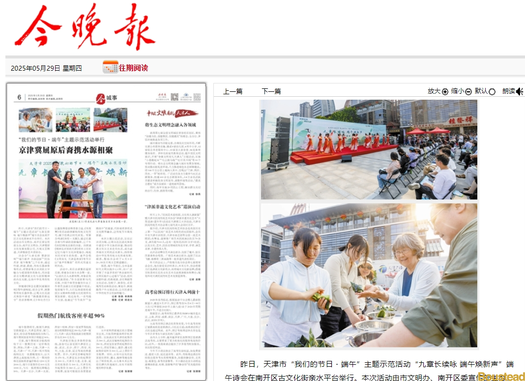端午临中夏,时清日复长。5月28日,天津市“我们的节日·端午”主题示范活动“九章长续咏 端午焕新声”端午诗会在南开区古文化街亲水平台举行。