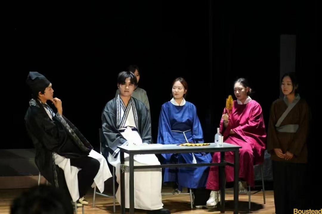 此次话剧的成功演出,是影视与舞蹈系戏文2301和2302两个班全体同学历时三个月、从台前到幕后全链条团队协作的心血凝聚,彰显了原创剧目的独特生命力。从“乌台诗案”的悲愤到“大江东去”的豪迈,整场话剧的情感表达细腻入微,牢牢抓住了观众的心。此外,在创作技法上,创作团队大胆融合说唱、歌舞等多元艺术形式,这种多样式、跨艺术门类的“另类”表达,既保留了历史剧的文化底蕴,又通过年轻化转译引发当代观众共鸣,实现了中华优秀传统文化经典内容通俗化舞台呈现的创新尝试,也让观众在60分钟的剧情里,以当代文化视角沉浸式地体验了一代文豪苏东坡的精神世界。